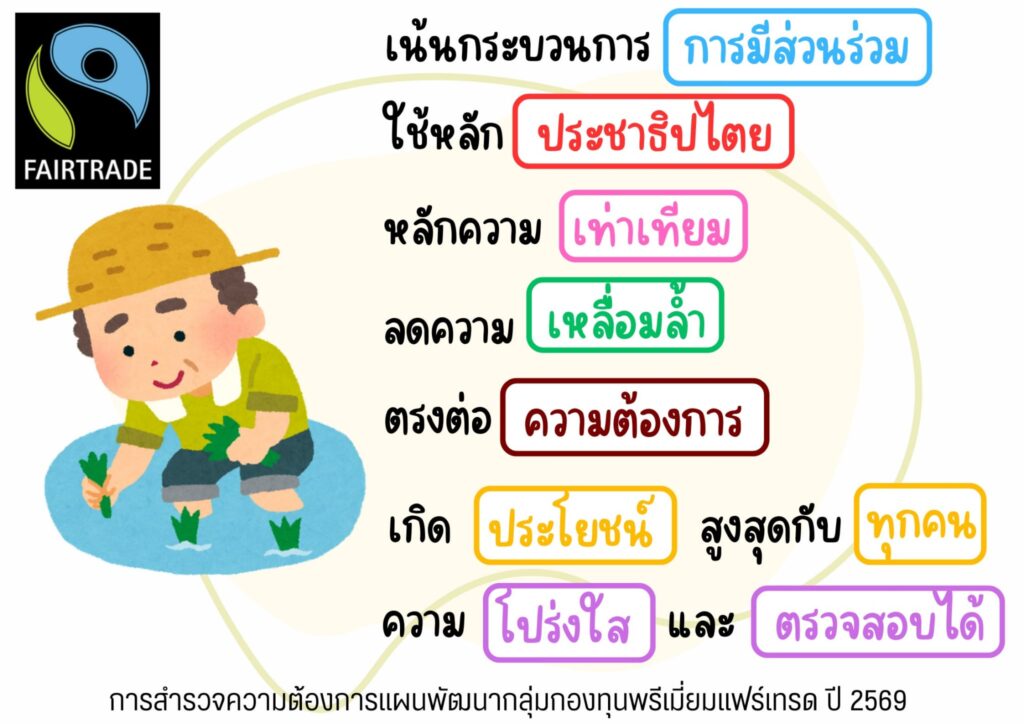 - เผยแพร่ความรู้เรื่องการค้าที่เป็นธรรม: สร้างความเข้าใจและส่งเสริมหลักการแฟร์เทรดให้เป็นที่รู้จักในวงกว้าง
