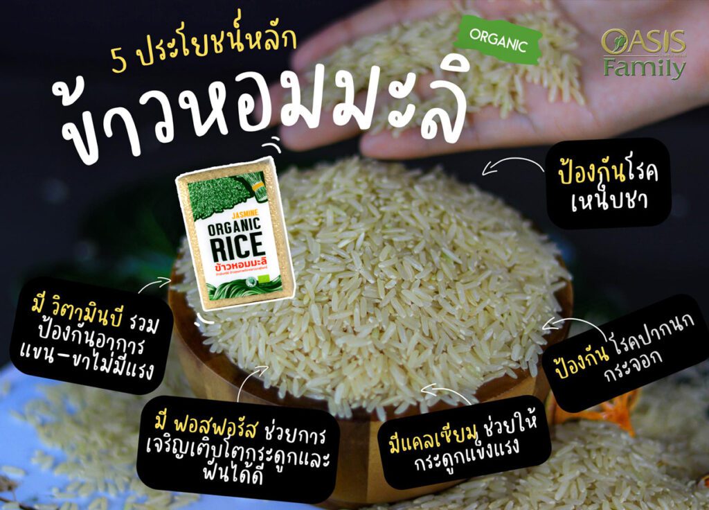 ข้าวหอมมะลิเป็นสายพันธุ์ข้าวที่มีต้นกำเนินในประเทศไทย เอกลักษณ์มีกลิ่นที่หอมคล้ายดอกมะลิ เมล็ดข้าวสารใสแกร่ง นุ่ม หุงง่าย และยังอุดมไปด้วยประโยชน์มากมายที่ดีต่อสุขภาพ